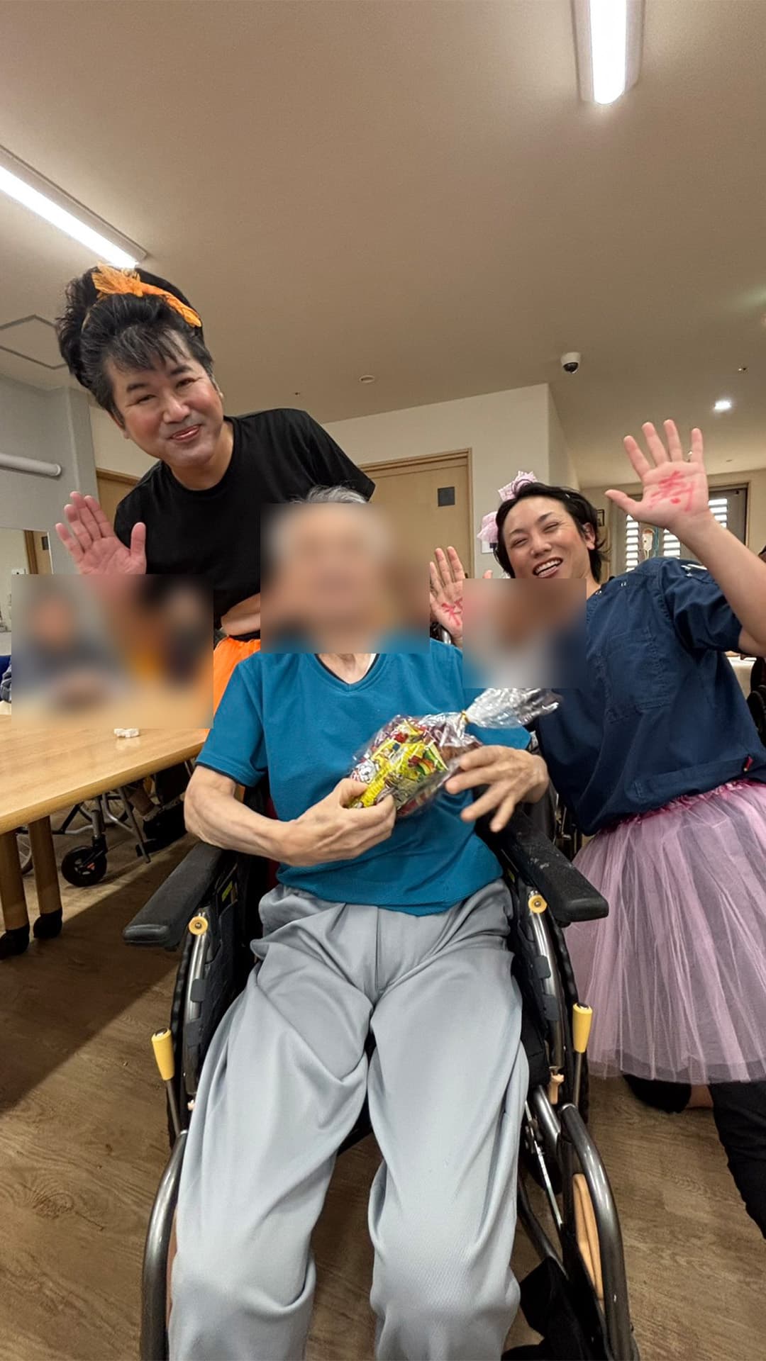 入居者様お一人お一人にメッセージカードと贈答品をお渡しし記念撮影!